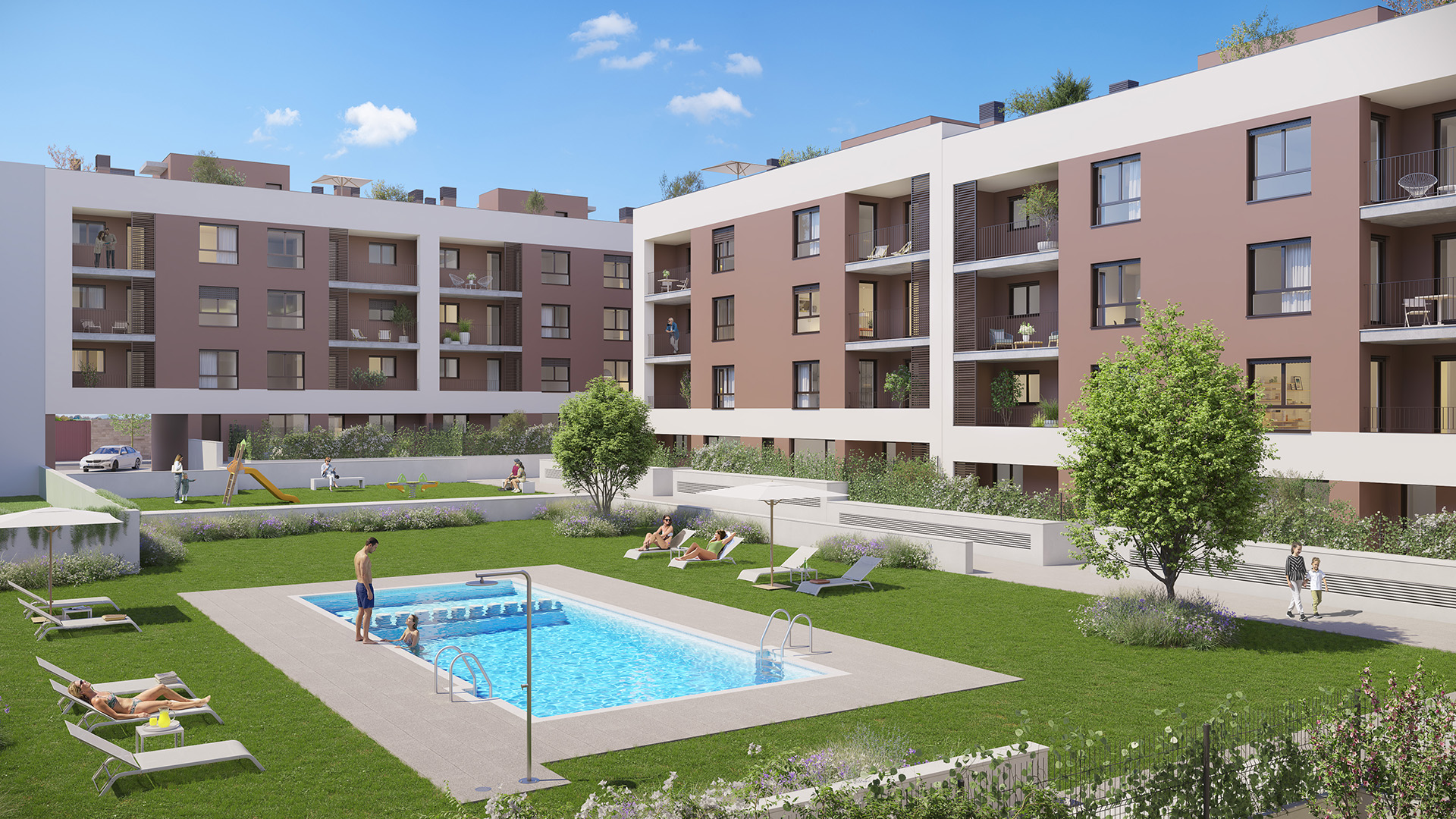 Las zonas comunes son uno de los grandes atractivos de esta promoción. Las viviendas cuentan con piscina comunitaria, zonas ajardinadas y espacios infantiles, diseñados para el disfrute de toda la familia.